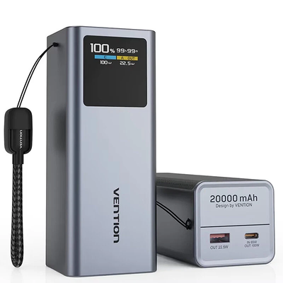 Vention FKC 100W 74 Wh 20000m Ah TFT Display Power Bank with Detachable USB (Universal Serial Bus)-C Lanyard Cable Design External Battery Power Supply with 1 Input & 2 Outputs Support QC3.0 PD3.0 FCP AFC SCP PPS UFCS Apple 2.4A Fast Charging for iPhone 17 17 Pro Max 16 15 14 for Huawei Mate XTs for Xiaomi 17pro for OPPO