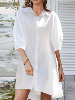 ZANZEA Women Daily Casual 3/4 Length Sleeve Solid Color Shirt Dresses