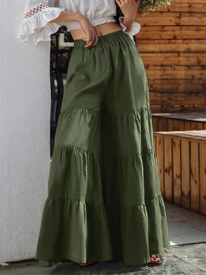 ZANZEA Women Solid Color Skirt Trousers Elastic Waist Wide Leg Long Pants Womens Bohemian Casual Baggy Pants