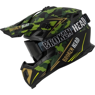 Broken Head Crosshelm Squadron Grün-Gold + MX-Brille Regulator
