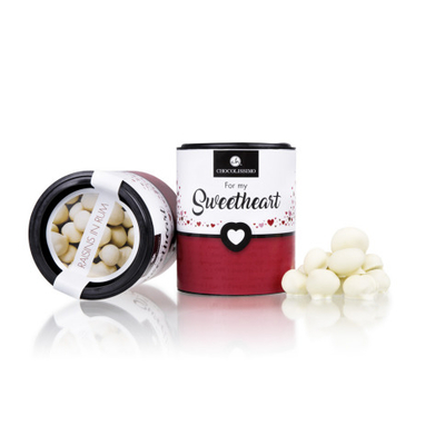 Diese leckeren Rosinen, verfeinert mit Jamaica Rum, werden in einen Mantel weißer Schokolade gehüllt und in einer bronzefarbenen Dose verpackt. Mit Alkohol. ...