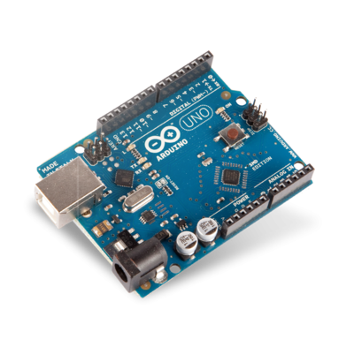 Das Arduino Uno ist ein Mikrocontroller Board basierend auf einem ATmega 328. Es hat 14 digitale Ein- / Ausgänge (6 davon können als PWM Kanäle genutzt werden), 6 analoge Eingänge, ein 16 MHz Quartz, USB (Universal Serial Bus) Schnittstelle, einen 6 poligen ISP Anschluss und einen Reset Taster. Es enthält alles nötige zum Start; man kann es einfach mit einem USB (Universal Serial Bus) Kabel mit dem PC verbinden oder über ein Netzteil/ Akku betreiben.