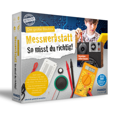 Das Komplettpaket mit Messgerät, Lautsprecherbausatz und Handbuch Du willst messen, was deinen Bildschirm zum Flimmern bringt, oder herausfinden, was die Musik von deinem Smartphone oder MP3-Player in Schwingung bringt? Dann bist du hier genau richtig, denn nur, wer richtig messen kann, versteht, wie die elektronischen Gegenstände in unserem Alltag funktionieren. Und damit der Spaß nicht zu kurz kommt, baust du mit diesem Paket deine eigene Boombox. Was du entdecken und erleben kann...