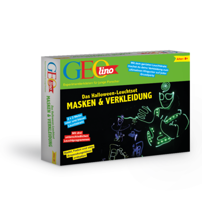 Die Idee für die nächste Gruselparty Geister, Superhelden und Zauberwesen aufgepasst: Hier kommt die Ausrüstung für die nächste Gruselparty! Mit dem GEOlino Leuchtset lassen sich Verkleidungen und Kostüme sich ganz einfach und in wenigen Schritten zum leuchtenden Hingucker umbauen. Einfach den Leuchtdraht mit den beiliegenden Nadel und Faden befestigen –die detaillierte Anleitung zeigt, wie es geht und gibt viele Anregungen. Nun kann zwischen drei verschiedenen Leuchtprogrammen gewählt werd...