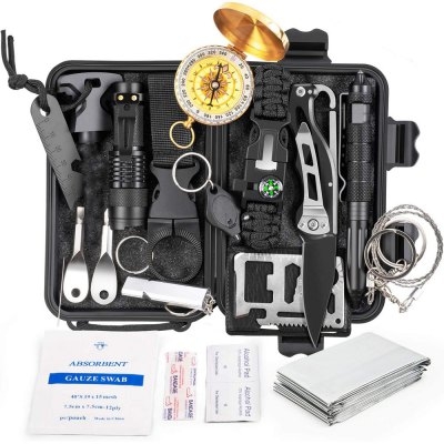 Emergency Survival Kit Survival Gear First Aid Kit SOS Tactical Tool Flashlight with Molle bag Suitable for Camping Adventure