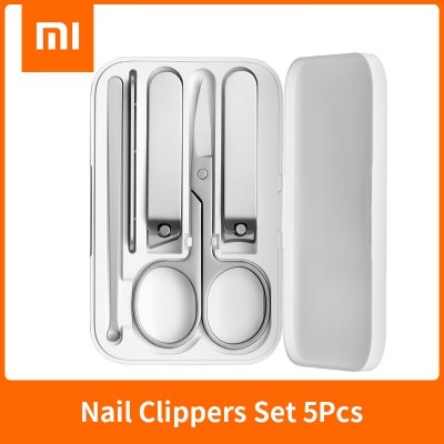 NEW XIAOMI Mijia Nail Clipper Set 5 Pcs Portable Fingernail Toenail Manicure Pedicure Magnetic Absorption-China-White