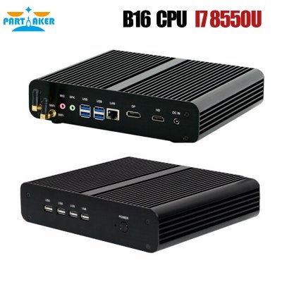 Partaker Fanless Mini Computer I7 8550U 7560U I5 8250U 7260U 2 DDR4