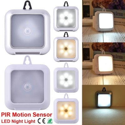 PIR Motion Sensor LED Cabinet Light 6LEDs Ultra Slim Portable Wall lamp Square Light with hook for Cupboard Kitchen Wardrobe with Glue tape & Magnet