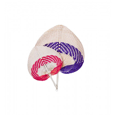 Es wird per Hand aus Bambusgeflochten und besteht aus einem kleinen und einem großem Fächer.