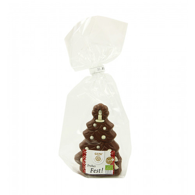 Unser neuer Tannenbaum aus feinster, zartschmelzender Bio Vollmilchschokolade mit weißem Schokoladendekor erfreut Klein und Groß und zergeht genüsslich auf der Zunge. Zudem macht er in jedem Weihnachtskörbchen, Adventsteller oder Nikolausstiefel eine gute Figur.