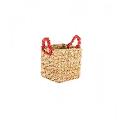 Ø ca. 30 cmDie roten Henkel sind ein echter Hingucker bei diesem eckigen Hogla-Korb. "Hogla" wird die Wasserhyazinthe in Bangladesch genannt. Von dort erhalten wir diese Körbe und zwar von unserem langjährigen Partner CORR - the Jute