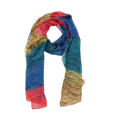 Länge: ca. 180 cmDer rote Schal aus einem Viskose-Seiden Mix wird per Hand mit Federn bedruckt. Die modische Farbgebung und