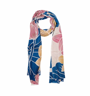 Länge: ca. 200 cmDer gelbe Schal aus einem Viskose-Seiden Mix wird per Hand mit Blattranken bedruckt. Die modische Farbgebung