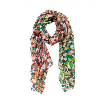 ...Der feine Schal aus einem Viskose-Seiden Mix wird per Hand bedruckt. Die modische Farbgebung und
