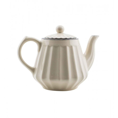 Die cremefarbene Teekanne mit schwarzem Rand wird von Sang Arun aus Thailand in liebevoller Handarbeit und in klassischer Farbgebung gefertigt.