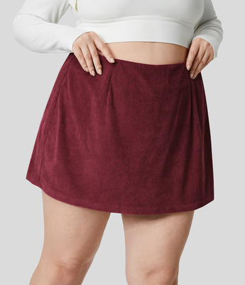 Women. Plus-Size 2-in-1-Mini-Cordrock mit hohem Bund und unsichtbarem Reißverschluss. Maschinenwäsche kalt. Nicht mit Chemikalien reinigen. Nicht bügeln. Nicht bleichen. Nur mit ähnlichen Farben waschen. Drehe den Stoff von innen nach außen. 3X (regular), 2X (regular), 1X (regular). Icy Bamboo Green, Pomegranate, Cocoa Brown, Vanilla Ice, Schwarz