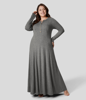 Halara - Plus-Size Langärmliges Flare-Maxikleid Mit