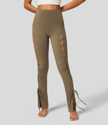 Women. Softlyzero™ Ausgeschnittene, dekorative, geteilte Yoga-Leggings mit hohem Bund und Schnürung. Maschinenwäsche kalt. Nicht mit Chemikalien reinigen. Nicht bügeln. Nicht bleichen. Nur mit ähnlichen Farben waschen. Drehe den Stoff von innen nach außen. XL(full_length), L(full_length), M(full_length), S(full_length), XS(full_length). Chestnut Brown, Schwarz