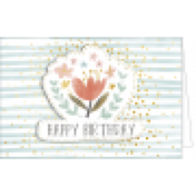 Diese liebliche Geburtstagskarte ist besonders hochwertig verarbeitet. Das Element, auf dem die Blumen und der Text abgebildet sind, wurde ausgestanzt und mit Klebepunkten auf der Glückwunschkarte fixiert. Dadurch ist ein interessanter 3D-Effekt entstanden. Zu lesen ist der Text: " Happy Birthday." Die Geburtstagskarte ist im Offsetverfahren auf hochwertigen Karton der Büttenpapierfabrik Gmund gedruckt. Das gewisse Etwas verleiht dieser Karte die goldfarbene Folienprägung. Diese Karte ist Teil der Kollektion „paperlove“.