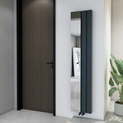 Dieser 1800mm x 375mm Aluminium-Designheizkörper mit Spiegel in Anthrazit aus der Aris-Kollektion wird Ihren vier Wänden ein elegantes und modernes Flair verleihen. Mit seinem stilvollen Design und der strapazierfähigen Pulverbeschichtung in Anthrazit ist dieser Aluminium-Designheizkörper eine echte Bereicherung. Darüber hinaus heizt er sich dank der leichten und dennoch robusten Aluminiumkonstruktion schnell auf und benötigt dabei sogar weniger Wasser als herkömmliche Heizkörper aus Stahl. Um diesen Designheizkörper zu vervollständigen, wählen Sie aus einer großen Auswahl an Hudson Reed Heizkörperventilen aus. Eigenschaften: Dimensionen Heizkörper: 1800mm x 375mm x 58mm 697 watt Dimensionen des Spiegels: 1800mm x 186mm Hochwertige Pulverbeschichtung in Anthrazit Hergestellt aus leichtem aber dennoch robusten Aluminium Platzsparendes vertikales Design Heizt sich schnell auf Benötigt weniger Wasser für eine verbesserte Effizienz Recycelbares Material Getestet nach BS EN 442-Standards ISO 9001:2015...