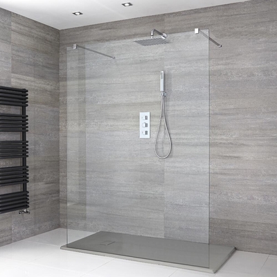 Lassen Sie Ihr Badezimmer mit der freistehenden Portland Walk-In Dusche in neuem Glanz erstrahlen. Zusammengesetzt wird sie aus einer gläsernen Duschw&, einer Duschwanne mit Schiefer-Effekt und einem Ablauf. Die Walk-In Dusche bietet Ihnen einen mühelosen Zugang von beiden Seiten und schafft einen großräumigen Duschbereich. Das 8mm verstärkte Sicherheitsglas sorgt dabei für Stabilität und Haltbarkeit, während mit der Höhe von 1950mm ungewünschte Wasserspritzer abgefangen werden. Die 30mm hohe Duschwanne wird durch einen zauberhaften Schiefer-Effekt betont und profitiert von einer leichten und dennoch überaus robusten Beschaffenheit. Hinzu kommt ein Ablauf mit hoher Ablaufleistung. Vervollständigen Sie den Look mit einem unserer stilvollen Duschsysteme und genießen Sie ein luxuriöses Duscherlebnis. Eigenschaften: Größe der Duschwanne: 1200 x 900mm Eingangsbereich: 900mm breit Duschwanne mit Schiefer-Effekt in Hellgrau Flache Duschwanne, nur 30mm hoch – so entsteht ein minimalistischer Look u...
