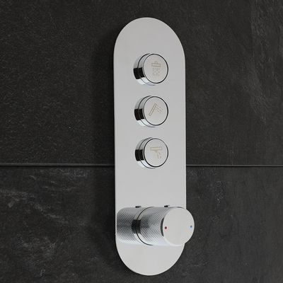 Gestalten Sie einen modernen Duschbereich in Ihrem Badezimmer mit der einfach zu Bedienenden Unterputz-Duscharmatur mit Drucktasten in Chrom für 3 Verbraucher. Die thermostatische Duscharmatur aus massivem Messing verfügt über eine robuste Oberfläche in Chrom und eine einfach zu bedienende Druckknopfsteuerungen. Sie ermöglichen Ihnen den Wechsel zwischen den zwei Funktionen, aber Sie können diese zwei Funktionen auch gleichzeitig verwenden. Die Armatur verfügt zudem über eine Verbrühungsschutztechnologie, die jedes Mal eine sichere und komfortable Dusche gewährleistet. Vervollständigen Sie das Design Ihres Badezimmers mit weiteren Artikeln aus der Idro-Kollektion. Eigenschaften: Dimensionen: B 90 mm x T 123 mm x H 270 mm Modernes Design Einfach zu bedienende Drucktastensteuerung Thermostatische Temperaturregelung Austauschbare Druckknopfabdeckungen für eine individuelle Anpassung Runder Hebelgriff regelt die Temperatur Duschventil aus Messing mit hochwertiger Oberfläche in Chrom Steuert drei Dusc...