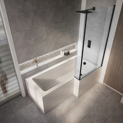 Kreieren Sie einen stylishen Wellnessbereich mit dieser 1500mm x 850mm Sandford-Duschbadewanne Rechtsbündig inkl. Badewannenaufsatz mit einem Profil in Schwarz. Sie verfügt über eine Rückenschräge und einen großzügigen Duschbereich, so ist ein luxuriöses und komfortables Bade- und Duscherlebnis garantiert. Die Duschbadewanne verfügt über eine strapazierfähige weiße Glanzoberfläche, welche nicht nur edel aussieht, sondern Ihnen auch die Reinigung erleichtert. Die Badewanne überzeugt mit einer robuste und stabile Konstruktion, so können Sie sicher sein, dass diese Badewanne Ihnen viele Jahre lang erhalten bleibt. Sie hat keine Hahnlöcher und kann somit ideal mit einer unserer wandmontierten Armaturen oder einer Wannenrandarmatur kombiniert werden. Der Badewannenaufsatz wurde aus verstärktem Sicherheitsglas gefertigt und überzeugt mit einem Aluminium-Profil in Schwarz. Eigenschaften: Dimensionen: 1500mm x 850mm x 550mm Rechtsbündig Mit Seiten- & Endverkleidung Fassungsvermögen: 200 Liter Dimensi...