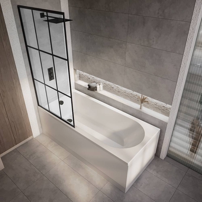 Kreieren Sie einen stylishen Wellnessbereich mit dieser Covelly-Duschbadewanne 1700mm x 750mm inkl. Badewannenaufsatz mit schwarzem Gittermuster. Diese Badewanne verfügt über eine Rückenschräge und einen Duschbereich, so ist ein luxuriöses und komfortables Bade- und Duscherlebnis garantiert. Die Duschbadewanne verfügt über eine strapazierfähige weiße Glanzoberfläche, welche nicht nur edel aussieht, sondern Ihnen auch die Reinigung erleichtert. Sie verfügt über eine robuste und stabile Konstruktion, so können Sie sicher sein, dass diese Badewanne Ihnen viele Jahre lang erhalten bleibt. Diese Badewanne hat keine Hahnlöcher und kann somit ideal mit einer unserer wandmontierten Armaturen kombiniert werden. Der Badewannenaufsatz wurde aus verstärktem Sicherheitsglas gefertigt und überzeugt mit einem Aluminium-Profil und schwarzem Gittermuster. Eigenschaften: Dimensionen: 1700mm x 750mm x 550mm Dimensionen Badewannenaufsatz: B 800 mm x H 1400 mm Mit Seiten- und Endverkleidung Badewannenaufsatz aus...