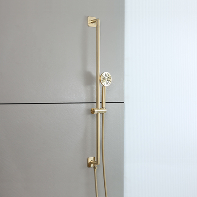 Verleihen Sie Ihrem Badezimmer einen stilvollen neuen Look mit dieser Duschstange inklusive integriertem Auslassbogen und Handbrause in satiniertem Gold aus der Lune-Kollektion. Die elegante Handbrause liefert einen erfrischenden Wasserstrahl und lässt sich leicht auf die gewünschte Höhe einstellen. Das Brausestangenset überzeugt mit einer soliden Messingkonstruktion und verfügt über einen integrierten Auslassbogen, welcher für ein saubereres Finish sorgt. Kombinieren Sie es mit anderen Artikeln der Lune-Kollektion für ein atemberaubendes modernes Badezimmer. Eigenschaften: Modernes Design mit Finish in satiniertem Gold Duschstange mit Handbrause aus ABS inkl. 1, 75 m Brauseschlauch Halterung für Handbrause höhenverstellbar Empfohlener Betriebsdruck: 0, 5 bar Was wird mitgeliefert? Handbrause 1, 75 m Brauseschlauch Duschstange mit integriertem Auslassbogen