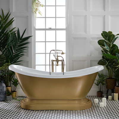 Setzen Sie mit der freistehenden Badewanne mit zwei erhöhten Rückenschrägen 1750mm x 730mm und Metalliclackierung aus der Ryther-Kollektion ein stilvolles und gewagtes Statement in Ihrem Badezimmer. Das klassische Design und der Farbanstrich in Metallic wird in Ihrem Badezimmer zum garantierten Blickfang. Dank der zwei Rückenschrägen können Sie an beiden Enden ein komfortables und entspannendes Badeerlebnis genießen, ob alleine oder zu zweit. Die Badewanne wurde aus hochwertigem Acrylgefertigt und bietet Ihnen somit langlebige Stabilität und eine angenehm warme Oberfläche, die resistent gegen Verfärbungen und Kratzer ist. Diese Freistehende Badewanne mit Sockel kann in verschiedenen Metallicfarben erworben werden – wählen Sie die gewünschte Option einfach oben aus. Verleihen Sie Ihrer Wanne mit einer unserer freistehenden oder W&-Wannenarmaturen den letzten Schliff und kombinieren Sie das Ensemble mit weiteren Artikeln aus der Ryther Kollektion, um einen abgestimmten Badezimmer-Look zu...