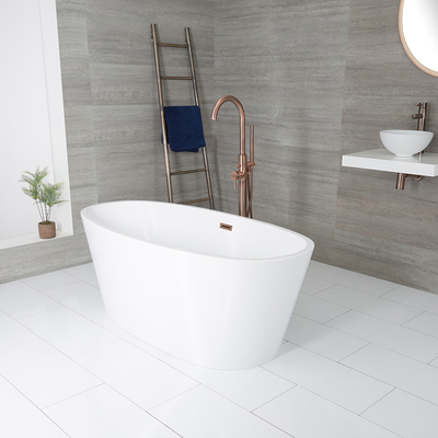 Die freistehende Badewanne aus der Ashbury Kollektion sorgt für ein zeitgenössisches Flair im Badezimmer und wird dabei zum garantierten Blickfang. Die Badewanne kann mit einer Überlaufgarnitur in verschiedenen Farben erworben werden – wählen Sie oben zwischen Chrom, gebürstetem Gold, geölter Bronze, Mattschwarz, gebürstetem Kupfer, gebürstetem Nickel oder Metallgrau aus. Das ovale Design überzeugt mit einer robusten und stabilen Beschaffenheit, die reichlich Platz für ein wohltuendes Badeerlebnis bietet, ob allein oder zu zweit. Dank der beiden Rückenschrägen können Sie sich an beiden Enden bequem anlehnen. In Kombination mit einer unserer freistehenden oder W&-Armaturen sowie anderen Artikeln aus der Ashbury Kollektion schaffen Sie einen stilvollen und stimmigen Badezimmer-Look. Eigenschaften: Farbe der Überlaufgarnitur wählbar: Chrom, gebürstetes Gold, geölte Bronze, Mattschwarz, gebürstetes Kupfer, gebürstetes Nickel oder Metallgrau Dimensionen: L 1595mm x B 740mm x H 590mm Modernes Des...