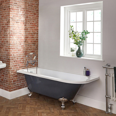 Setzen Sie mit der freistehenden Elton Eck-Badewanne ein stilvolles Statement in Ihrem Bad. Dieses Modell überzeugt optisch mit dem steingrauen Finish sowie den dekorativen Füßen in Chrom. Genießen Sie in dieser Wanne das ultimative Badeerlebnis. Sie besteht aus hochwertigem Acryl und ist somit nicht nur stabil, sondern auch resistent gegen Verfärbungen und Kratzer – so sieht sie jahrelang aus wie neu. Dank des Eckdesigns ist diese Badewanne ideal für die Installation mit einem unserer Badewannenaufsätze geeignet. Die Wanne ist in links- oder rechtsbündiger Ausführung erhältlich. Wählen Sie einfach oben aus. Kombinieren Sie die Wanne mit einer unserer Armaturen und gestalten Sie eine stimmige Optik im traditionellen Stil. Eigenschaften: Dimensionen: L 1685mm x B 750mm x H 640mm Links oder rechtsbündige Ausführung auswählbar Ein Hauch von Luxus: Dekorative Füße in Chrom Finish in Steingrau Aus hochwertigem Acryl mit einer Oberfläche in Weiß Hochglanz Verstärkt durch Harz und Glasfaser – für lang...