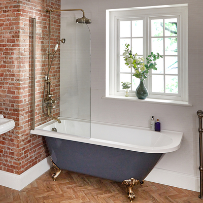 Verleihen Sie Ihrem Bad mit der freistehenden Elton Eck-Badewanne einen eleganten Look, der sofort ins Auge fällt. Genießen Sie in dieser Wanne das ultimative Badeerlebnis. Sie besteht aus hochwertigem Acryl und ist somit nicht nur stabil, sondern auch resistent gegen Verfärbungen und Kratzer – so sieht sie jahrelang aus wie neu. Der Badewannenaufsatz ist eine stilvolle und praktische Möglichkeit, das umliegende Bad beim Duschen vor Wasserspritzern zu schützen. Kombinieren Sie die Wanne mit einer unserer Armaturen und gestalten Sie eine stimmige Optik im traditionellen Stil. Eigenschaften: Dimensionen: L 1685mm x B 750mm x H 640mm Linksbündiges Design Ein Hauch von Luxus: Dekorative Füße in gebürstetem Gold Aus hochwertigem Acryl mit einer Oberfläche in Weiß Hochglanz Verstärkt durch Harz und Glasfaser – für langlebige Haltbarkeit Strapazierbare Innenglasur in Weiß erleichtert die Reinigung Außenglasur in Steingrau (RAL 7024) Ohne Hahnlochvorbohrungen – eignet sich zur Nutzung mit W&- oder Wann...