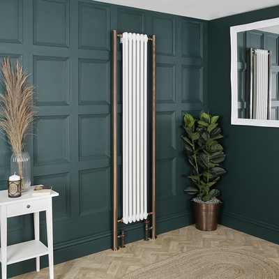 Der elegante Regent Gliederheizkörper kombiniert eine klassische Optik mit einem platzsparenden, vertikalen Design. Er verfügt dabei über eine strapazierbare Pulverbeschichtung in Weiß, die jedem Farbschema schmeichelt und das zeitlose Design eignet sich sowohl für moderne als auch für traditionelle Einrichtungen. Der Heizkörper ist aus hochwertigem Stahl gefertigt und garantiert somit langlebige Haltbarkeit, während die seitlichen Rohrverlängerungen in geölter Bronze die Heizleistung maximieren und im Nu für einen angenehm warmen Raum sorgen.Wählen Sie auch aus einer großen Auswahl an Heizkörperventilen aus, um dieses Ensemble zu vervollständigen. Eigenschaften: Dimensionen H 2030mm x B 455mm x T 68mm (inkl. Rohrverlängerung) Heizleistung: 1403 Watt {{custom Var code=WATTS_TOOLTIP}} Verlängerungsrohre in geölter Bronze Heizkörperventile werden unten angebracht Qualitativ hochwertige Pulverbeschichtung in Weiß Verlängerungsrohre aus Stahl für zusätzliche Wärmeleistung Robuste Konstruktion: herg...