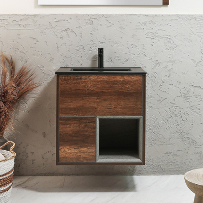 Verleihen Sie Ihrem Badezimmer mit dem hängenden Hudson Reed Hoxton 612mm Waschtisch in dunkler Eiche inklusive einem Elements-Waschbecken in Graphit einen eleganten Stil. Hergestellt aus robustem Holzwerkstoff, ist der hängende Waschtischunterschrank eine stilvolle und praktische Aufbewahrungslösung. Er verfügt über ein offenes Regal, welches Ihnen viel Platz zum Aufbewahren Ihrer Toilettenartikel bietet. Das Elements-Waschbecken aus hochwertiger Keramik verfügt über eine strapazierfähige Oberfläche in Graphit, welche leicht zu reinigen ist. Es hat ein Hahnloch und kann somit ideal mit allen unsere 1-Loch Waschtischarmaturen kombiniert werden. Vervollständigen Sie Ihr Badezimmer mit anderen Artikeln aus der Hoxton-Kollektion und kreieren so ein perfekt aufeinander abgestimmtes Bad. Eigenschaften: Dimensionen Unterschrank: B 594 mm x T 456 mm x H 600 mm Dimensionen Waschbecken: B 612 mm x T 465 mm x H 16, 5 mm Modernes Design Konstruktion aus FSC-zertifiziertem Holzwerkstoff in dunkler Eiche Sc...