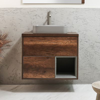 Verleihen Sie Ihrem Badezimmer mit dem hängenden 800mm Waschtisch in dunkler Eiche aus der Hoxton-Kollektion mit rechteckigem Elements-Aufsatzwaschbecken in Grau (Pebble) einen eleganten Stil. Hergestellt aus robustem Holzwerkstoff, ist der hängende Waschtischunterschrank eine stilvolle und praktische Aufbewahrungslösung. Er verfügt über ein offenes Regal, welches Ihnen viel Platz zum Aufbewahren Ihrer Toilettenartikel bietet. Das Elements-Waschbecken aus hochwertiger Keramik verfügt über eine strapazierfähige Glasur, welche leicht zu reinigen ist. Es hat kein Hahnloch und kann somit ideal mit allen unseren hohen 1-Loch Waschtischarmaturen oder Wandarmaturen kombiniert werden. Vervollständigen Sie Ihr Badezimmer mit anderen Artikeln aus der Hoxton-Kollektion und kreieren so ein perfekt aufeinander abgestimmtes Bad. Eigenschaften: Dimensionen Unterschrank: B 800 mm x T 460 mm x H 636 mm Dimensionen Waschbecken: B 505 mm x T 370 mm x H 110 mm Modernes Design Konstruktion aus FSC-zertifiziertem...