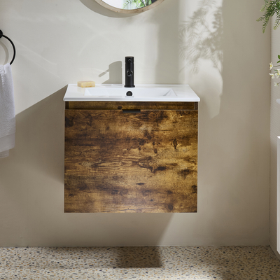 Verleihen Sie Ihrem Badezimmer einen neuen Stil mit dem hängenden 600mm Waschtischunterschrank in dunkler Eiche mit Waschbecken und Griffleiste für Möbel in Schwarz. Dieser Waschtisch überzeugt mit einem klaren, minimalistischen Design und einem atemberaubenden Finish in dunkler Eiche. Der Cluo-Waschtischunterschrank ist eine stilvolle und praktische Aufbewahrungslösung für Ihre Badezimmerutensilien und verfügt über ein hängendes Design. Die Soft-Close-Schublade verhindert ein geräuschvolles Zuschlagen. Das mitgelieferte Waschbecken verfügt über eine Hahnlochvorbohrung und kann ideal mit einer unserer 1-Loch Waschtisch Armaturen kombiniert werden.Wählen Sie aus einer großen Auswahl an modernen 1-Loch Waschtisch Armaturen aus und vervollständigen so Ihren neuen Waschtischunterschrank. Eigenschaften: Dimensionen Einheit: B 594 mm x T 450 mm x H 500 mm Dimensionen Waschbecken: B 600 mm x T 460 mm x H 20 mm Stilvolle und praktische Aufbewahrungslösung für Ihre Badezimmerutensilien Soft-Close-S...