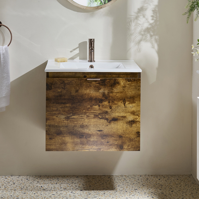 Verleihen Sie Ihrem Badezimmer einen neuen Stil mit dem hängenden 600mm Waschtischunterschrank in dunkler Eiche mit Waschbecken und Griffleiste für Möbel in gebürsteter Bronze. Dieser Waschtisch überzeugt mit einem klaren, minimalistischen Design und einem atemberaubenden Finish in dunkler Eiche. Der Cluo-Waschtischunterschrank ist eine stilvolle und praktische Aufbewahrungslösung für Ihre Badezimmerutensilien und verfügt über ein hängendes Design. Die Soft-Close-Schublade verhindert ein geräuschvolles Zuschlagen. Das mitgelieferte Waschbecken verfügt über eine Hahnlochvorbohrung und kann ideal mit einer unserer 1-Loch Waschtisch Armaturen kombiniert werden.Wählen Sie aus einer großen Auswahl an modernen 1-Loch Waschtisch Armaturen aus und vervollständigen so Ihren neuen Waschtischunterschrank. Eigenschaften: Dimensionen Einheit: B 594 mm x T 450 mm x H 500 mm Dimensionen Waschbecken: B 600 mm x T 460 mm x H 20 mm Stilvolle und praktische Aufbewahrungslösung für Ihre Badezimmerutensilien S...