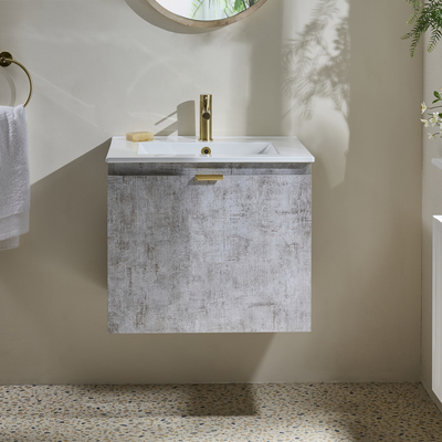 Verleihen Sie Ihrem Badezimmer einen neuen Stil mit dem hängenden 600mm Waschtischunterschrank in Steingrau mit Waschbecken und Griffleiste für Möbel in satiniertem Gold. Dieser Waschtisch überzeugt mit einem klaren, minimalistischen Design und einem atemberaubenden Finish in Steingrau. Der Cluo-Waschtischunterschrank ist eine stilvolle und praktische Aufbewahrungslösung für Ihre Badezimmerutensilien und verfügt über ein hängendes Design. Die Soft-Close-Schublade verhindert ein geräuschvolles Zuschlagen. Das mitgelieferte Waschbecken verfügt über eine Hahnlochvorbohrung und kann ideal mit einer unserer 1-Loch Waschtisch Armaturen kombiniert werden.Wählen Sie aus einer großen Auswahl an modernen 1-Loch Waschtisch Armaturen aus und vervollständigen so Ihren neuen Waschtischunterschrank. Eigenschaften: Dimensionen Einheit: B 594 mm x T 450 mm x H 500 mm Dimensionen Waschbecken: B 600 mm x T 460 mm x H 20 mm Stilvolle und praktische Aufbewahrungslösung für Ihre Badezimmerutensilien Soft-Close-...