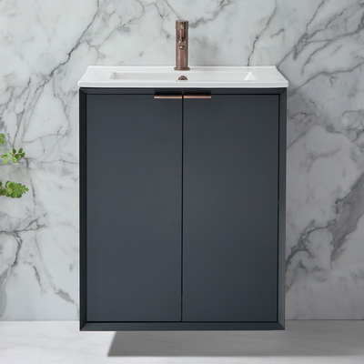 Verleihen Sie Ihrem Badezimmer einen luxuriösen neuen Farbtupfer mit dem hängenden 610mm Waschtischunterschrank mit Waschbecken in Anthrazit inklusive Griffleiste für Möbel in gebürsteter Bronze. Dieser Waschtisch überzeugt mit einem klaren, minimalistischen Design und einem atemberaubenden Finish in Anthrazit. Dank seiner kompakten Konstruktion eignet sich dieser Waschtischunterschrank perfekt für kleine Badezimmer und Gäste-WCs. Der Edge-Waschtischunterschrank ist eine stilvolle und praktische Aufbewahrungslösung für Ihre Badezimmerutensilien und er verfügt über ein freistehendes Design. Die Soft-Close-Türen verhindern ein geräuschvolles Zuschlagen. Das mitgelieferte Waschbecken verfügt über eine Hahnlochvorbohrung und kann ideal mit einer unserer 1-Loch Waschtisch Armaturen kombiniert werden.Wählen Sie aus einer großen Auswahl an modernen 1-Loch Waschtisch Armaturen aus und vervollständigen Sie so Ihren neuen Waschtischunterschrank. Eigenschaften: Dimensionen gesamt: B 606 mm x T 395...