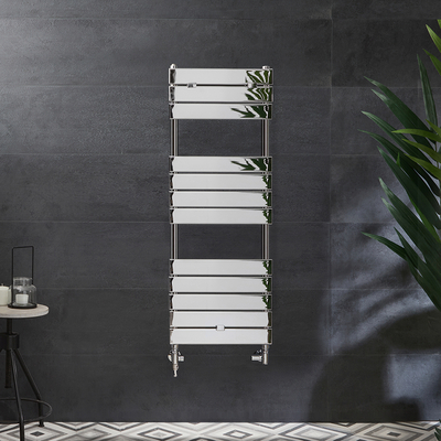 Genießen Sie ultimative Flexibilität mit dem Lustro 1213mm x 450mm Handtuchheizkörper für den Mischbetrieb in Chrom und kommen in den Genuss warmer Handtücher zu jeder Jahreszeit – dieses Mischbetrieb-Set enthält ein paar Winkelventile für den Anschluss an die Zentralheizung sowie ein T-Stück und ein Heizelement für den Betrieb mit Strom. Das energieeffiziente Heizelement regelt seine Leistungsabgabe selbst, so hält es eine konstante Temperatur. Da sich am Gehäuse selbst kein Ein-/ Ausschalter befindet, benötigt dieses Heizelement eine Festverdrahtung mit Sicherung, einen externen Schalter oder ein externes Thermostat, hiermit kann die Heizleistung dann nach Ihren Wünschen angepasst werden. Ein WLAN-Thermostat kann separat bei uns erworben werden. Diese Kollektion überzeugt mit einem modernen Leiterdesign, welches viel Platz für Ihre Handtücher bietet. Hergestellt aus hochwertigem Stahl mit einer robusten Oberfläche verspricht dieser Handtuchheizkörper eine lange Lebensdauer. Eigenschaften...