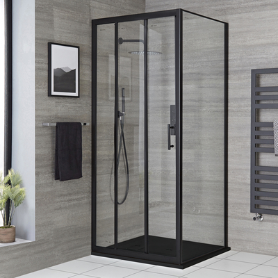 Mit der mattschwarzen Nox Duschkabine setzen Sie ein stilvolles Statement in Ihrem Badezimmer. Zusammengesetzt wird das Ensemble aus einer Schiebetür, einer Seitenw&, und einer Duschwanne mit Schiefer-Effekt. Die Höhe von 1950mm fängt ungewünschte Duschspritzer auf, während das Finish in Mattschwarz für einen schicken Designer-Look sorgt – eine wahre Bereicherung für Ihr Badezimmer. Die leichte und dennoch langlebige Duschwanne ist nur 30mm hoch und bietet daher einen einfacheren Duschzugang. Der Schiefer-Effekt erzeugt dabei ein natürliches Ambiente wie im Spa.Für ein wohltuendes Duscherlebnis und einen stilvollen Duschbereich kann das Ensemble mit einem unserer Nox Duschsysteme kombiniert werden. Eigenschaften: Dimensionen: 900mm x 800mm Inklusive Duschwanne mit Schiefer-Effekt in Anthrazit 3-teilige Schiebetür vergrößert den Eingangsbereich 6mm verstärktes Sicherheitsglas für extra Stabilität (5mm für die 3-teilige Schiebetür) Mattschwarzes Aluminiumprofil Schiebetür kann ausgehakt wer...