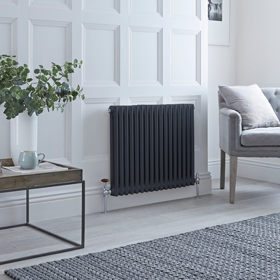 Kreieren Sie mit diesem horizontalen 600mm x 785mm Gliederheizkörper in Anthracite aus der Regent-Kollektion einen eleganten und doch raffinierten Look. Dieser Gliederheizkörper überzeugt mit einer robusten Pulverbeschichtung in Anthracite und dank der zwei Säulen wird Ihnen eine beachtliche Heizleistung geboten, während die Konstruktion aus hochwertigem Stahl langlebige Haltbarkeit verspricht. Vervollständigen Sie Ihren Gliederheizkörper mit einem unserer stilvollen Ventilsets. Eigenschaften: Warmwasserheizkörper (Zum Anschluss an eine Zentralheizung)965 Watt {{custom Var code=WATTS_TOOLTIP}} Klassisches Design mit 2-Säulen Hochwertige Pulverbeschichtung in Anthracite Pulverbeschichtungsprozess sorgt für eine gleichmäßige Oberfläche Hergestellt aus 1, 5 mm dicker Stahl Horizontal Wärmeleistung geprüft nach DIN EN442