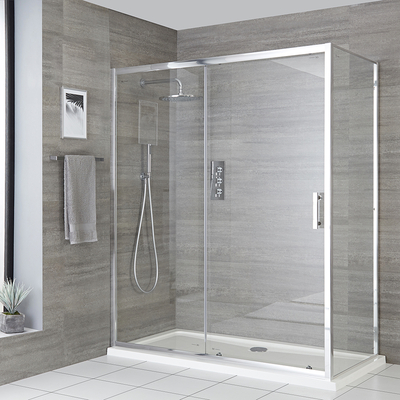 Lassen Sie Ihr Bad in neuem Glanz erstrahlen und verleihen Sie ihm mit der Portland Eck-Dusche einen modernen Look. Vervollständigt wird die Kabine durch eine Schiebetür, eine weiße Duschwanne und einen Ablauf mit hoher Ablaufleistung. Die Duschkabine besteht aus verstärktem Sicherheitsglas und hält den Strapazen des Alltags somit mühelos st&. Der doppelte Rollmechanismus ermöglicht Ihnen zudem ein einfaches Ã-ffnen und Schließen der Tür. Die 45mm hohe Duschwanne ist leicht und dennoch überaus robust – so entsteht ein minimalistischer Look und ein einfacher Zugang zur Dusche. Hinzu kommt ein Ablauf, mit dem das Wasser beim Duschen in kürzester Zeit abfließt. Vervollständigen Sie den Look mit einer unserer stilvollen Duschsysteme und genießen Sie ein luxuriöses Duscherlebnis. Eigenschaften: Dimensionen: 1400mm x 800mm Höhe der Schiebetür und Seitenwand: 1850mm Gefertigt aus 6mm verstärktem Sicherheitsglas für extra Stabilität Poliertes Aluminiumprofil und verchromte Griffe schmeicheln jedem...