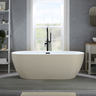 Setzen Sie mit der modernen freistehenden 1500mm x 750mm Badewanne mit zwei Rückenschrägen in Beige (Linen) inkl. Überlauf in Schwarz aus der Otterton-Kollektion ein stilvolles und gewagtes Statement in Ihrem Badezimmer. Das moderne Design und der glänzende Farbanstrich in Beige (Linen) wird in Ihrem Badezimmer zum garantierten Blickfang. Dank der zwei Rückenschrägen können Sie ein komfortables und entspannendes Badeerlebnis genießen. Die Badewanne wurde aus hochwertigem Acryl gefertigt und bietet Ihnen somit langlebige Stabilität, eine angenehm warme Oberfläche und eine Oberfläche, die resistent gegen Verfärbungen und Kratzer ist. Verleihen Sie Ihrer Wanne mit einer unserer freistehenden oder W&-Wannenarmaturen den letzten Schliff und kombinieren Sie das Ensemble mit weiteren Artikeln aus der Otterton Kollektion, um einen abgestimmten Badezimmer-Look zu erzielen. Eigenschaften: Dimensionen: 1500mm x 750mm x 580mm Strapazierfähiges Glanzfinish in Beige (Linen) Modernes Design Inklusive Üb...