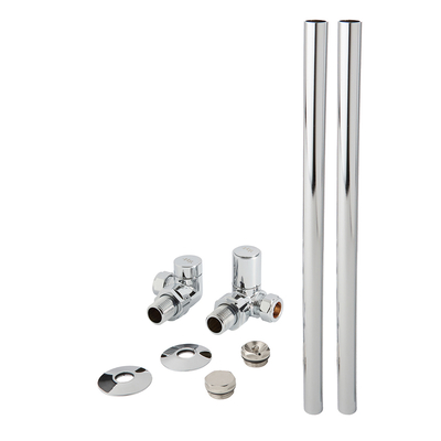 Vervollständigen Sie Ihren neuen Heizkörpers mit dem modernen Eckventilset- und Rohrverbinderset in Chrom von Hudson Reed. Hergestellt aus Messing überzeugen das Eckventilset und die Rohrverbindungen mit einem zeitlosen Design und einem Finish in Chrom. Die Ventile können mit all unseren Heizkörpern und beheizten Handtuchhaltern kombiniert werden.. Die Rohrverbindungen in Chrom ermöglichen eine saubere Verbindung zwischen dem Einlass des Heizkörperventils und dem Boden zudem sorgt das Finish in Chrom für einen perfekt abgestimmten Look. Die Rohre haben freiliegende Messingenden, die das Anlöten an die Rohrleitungen Ihres Heizkörpers ermöglicht. Eigenschaften: Modernes Design mit Finish in Chrom Hergestellt aus Messing Standard-½-Zoll-Gewindeanschluss Für 15mm Kupferrohre Zwei Flansche mit 50 mm Durchmesser für die Bodenmontage Lieferung erfolgt paarweise Was ist enthalten? Paar Eckventile Blind- und Entlüftungsstopfen Rohre und Flansche x 2