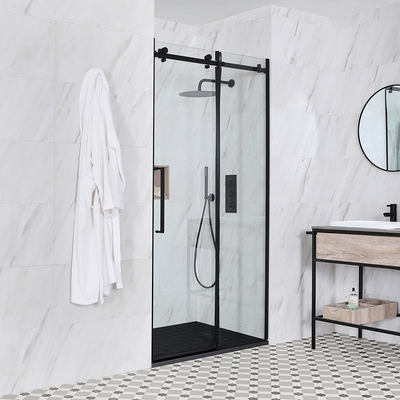Verleihen Sie Ihrem Badezimmer mit der rahmenlosen Nox Duschkabine mit Schiebetür einen eleganten Look, der sofort ins Auge fällt. Vervollständigt wird das Ensemble durch eine Duschwanne mit Schiefer-Effekt und einen Ablauf mit hoher Ablaufleistung. Mit dem rahmenlosen Design und dem Aluminiumprofil in Mattschwarz erzeugt die Duschkabine eine minimalistische Optik. Die Schiebetür besteht aus 6mm verstärktem Sicherheitsglas, um Ihnen extra Stabilität gewährleisten zu können, während die Höhe vom 1950mm das Bad vor ungewünschten Wasserspritzern schützt. Die leichte und dennoch überaus strapazierbare Duschwanne ist mit einem Schiefer-Effekt Finish versehen und erzeugt ein natürliches Ambiente. Die Höhe von nur 30mm erleichtert zudem den Duschzugang. Vervollständigen Sie den Look mit einer unserer stilvollen Nox Duschsysteme in Schwarz und genießen Sie ein luxuriöses Duscherlebnis. Eigenschaften: Größe der Duschwanne: 1000mm x 800mm Höhe der Schiebetür: 1950mm 6mm verstärktes Sicherheitsglas fü...