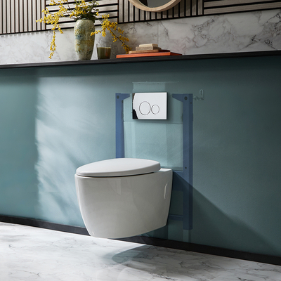 Bringen Sie ein modernes Flair in Ihr Badezimmer mit diesem Hänge-WC inkl. Sitz mit Absenkautomatik, einem niedrigem Wandrahmen und einer runden Betätigungsplatte in Chrom aus der Kenton-Kollektion. Diese Toilette überzeugt mit einem minimalistischen Design und sorgt so für einen klareren Look. Der mitgelieferte Sitz verfügt über Soft-Close-Scharniere, um ein Zuschlagen zu verhindern. Die Betätigungsplatte ist in unterschiedlichen Varianten erhältlich – treffen Sie ganz einfach Ihre Auswahl aus den oben genannten Optionen Kombinieren Sie dieses Hänge-WC mit anderen Artikeln aus unserem Sortiment. Eigenschaften: Dimensionen Toilettenschüssel: B 380 mm x T 570 mm x H 340 mm Dimensionen Wandrahmens: B 500 mm x T 160–190 mm x H 820–1020 mm Runde Betätigungsplatte in Chrom Modernes ovales Design Ohne Spülrand Wandmontage Sitz mit Schnellverschluss und Soft-Close-Funktion Strapazierfähige Keramik mit leicht zu reinigender Oberfläche in Weiß Wassersparender Spülkasten mit Zweimengenspültechnik Wandrahmen g...