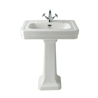 Erschaffen Sie einen eleganten Vintage-Look in Ihrem Badezimmer mit diesem traditionellen Standwaschbecken aus der Victrion by Hudson Reed-Kollektion. Dieses Waschbecken besteht aus hochwertigem Kristallporzellan und besticht mit seinen geschwungene Linien sowie dem luxuriösen Finish in Weiß. Dieses Waschbecken hat eine Hahnlochvorbohrung und kann daher perfekt mit einer unseren 1-Loch Waschtischarmaturen vervollständigt werden. Eigenschaften: Hergestellt aus hochwertigem Kristallporzellan mit glänzend weißer OberflächeÜberlauf mit raffinierter Gitterabdeckung Muss an der Wand montiert werden, die Säule trägt jedoch das meiste Gewicht Zur Verwendung mit 1-Loch-Waschtischarmaturen Sie benötigen zudem: (siehe Zusatzprodukte)1-Loch Waschtischarmaturen Siphon Ablauf mit Überlauffunktion oder einen Universalablauf