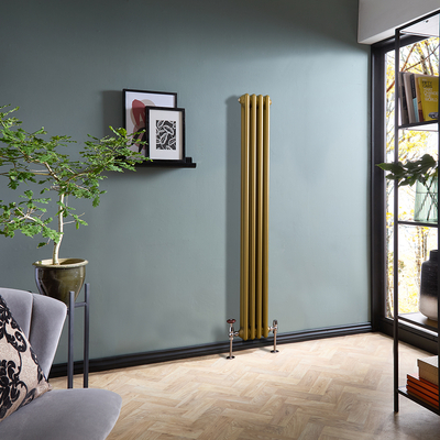 Verleihen Sie Ihren Räumlichkeiten einen zauberhaft traditionellen Look mit dem vertikalen 1500mm x 200mm 2-Säulen Regent Gliederheizkörper in metallischem Gold. Der Heizkörper ist aus hochwertigem Stahl gefertigt und verzaubert mit einer edlen Pulverbeschichtung in metallischem Gold, zudem überzeugt er mit einer beachtlichen Heizleistung und verwandelt Ihren Raum in kürzester Zeit in einen einladenden und angenehm warmen Bereich.Wählen Sie auch aus einer großen Auswahl an Heizkörperventilen aus, um dieses Ensemble zu vervollständigen. Eigenschaften: Dimensionen: 1500mm x 200mm x 68mm 548 Watt {{custom Var code=WATTS_TOOLTIP}} Hochwertige Pulverbeschichtung in metallischem Gold Aus 1, 5mm dickem Stahl Hohe Heizleistung CE-Zertifikat Was wird mitgeliefert? Wandhalterungen Wanddübel Blind- und Entlüftungsstopfen